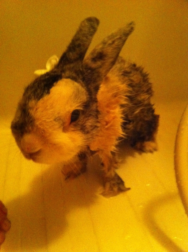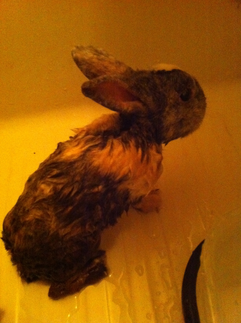 ウサギは皮膚が弱いので、ちゃんとシャンプーを流して、水分をふき取ってあげないと、かぶれたりするそうですので、念入りに…。